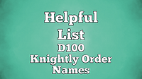 This is the first in my re-vamp of my older "Helpful List" series - a d100 table/list around a particular topic - This one covers Knightly Order Names. These will be made using a combination of my PDF...